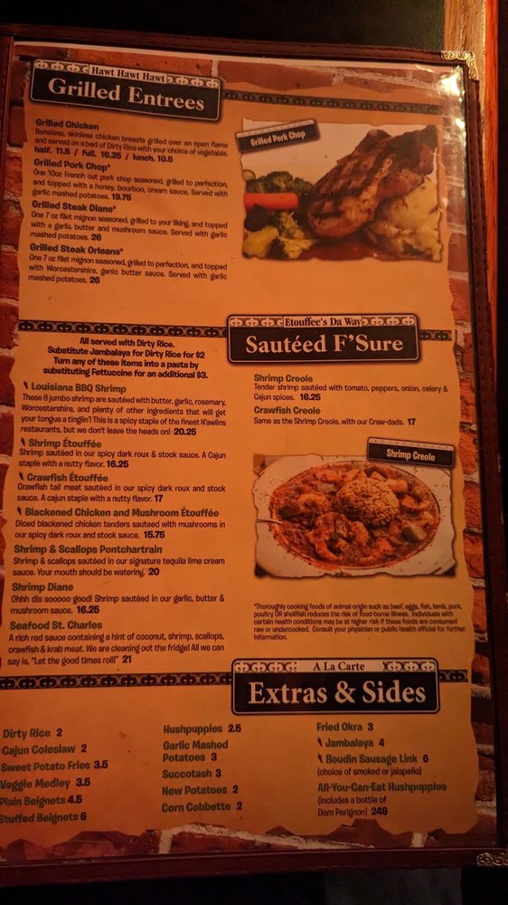 Tender shrimp sautéed with tomato, peppers, onions, celery, and Cajun spices with crawdads.