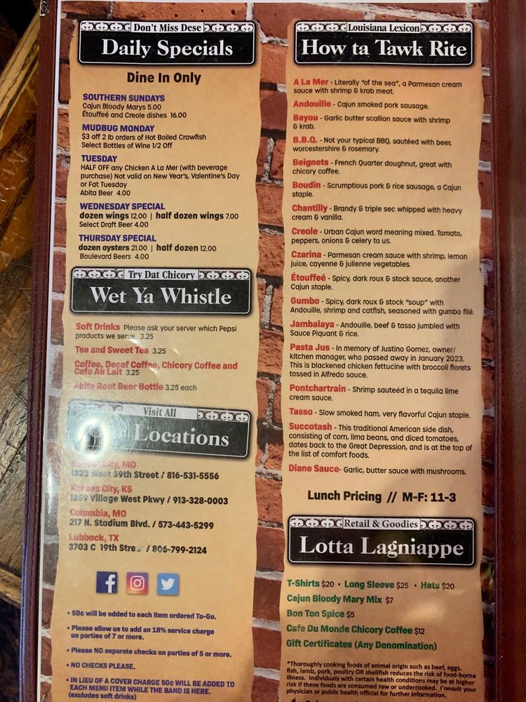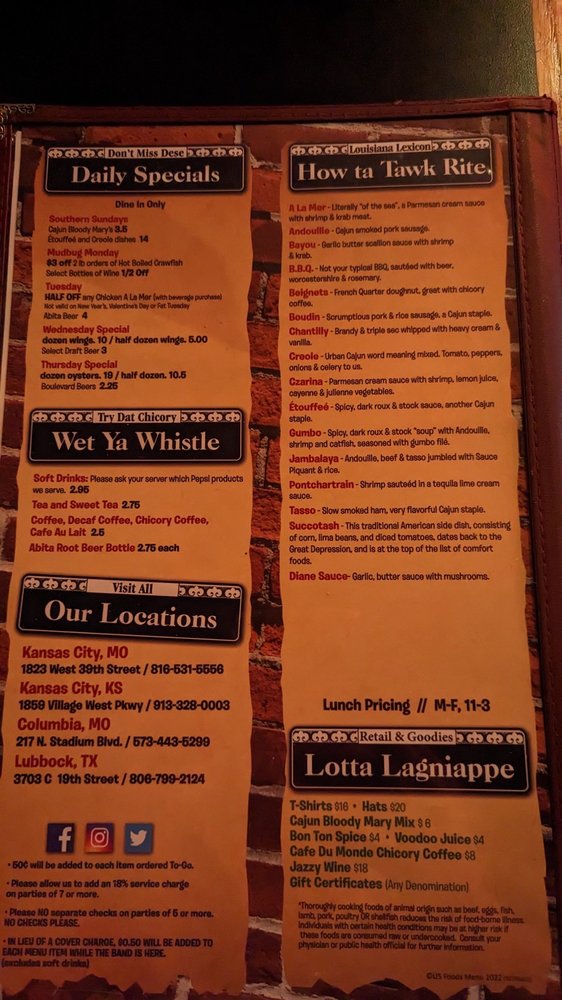 Jazz A Louisiana Kitchen, located in Kansas City, offers a vibrant taste of Cajun/Creole seafood cuisine with a New Orleans ambiance. The restaurant provides a range of amenities, from reservations and delivery to outdoor seating and live music. Customers praise the flavorful dishes, such as the blackened catfish and shrimp Po'boy, as well as the inviting atmosphere. With a diverse menu showcasing Cajun classics like blackened chicken fettuccine and catfish nuggets, Jazz A Louisiana Kitchen satisfies guests' appetites for authentic Southern flavors. Whether dining in for lunch or dinner or grabbing takeout, this restaurant ensures a delightful culinary experience with every visit.